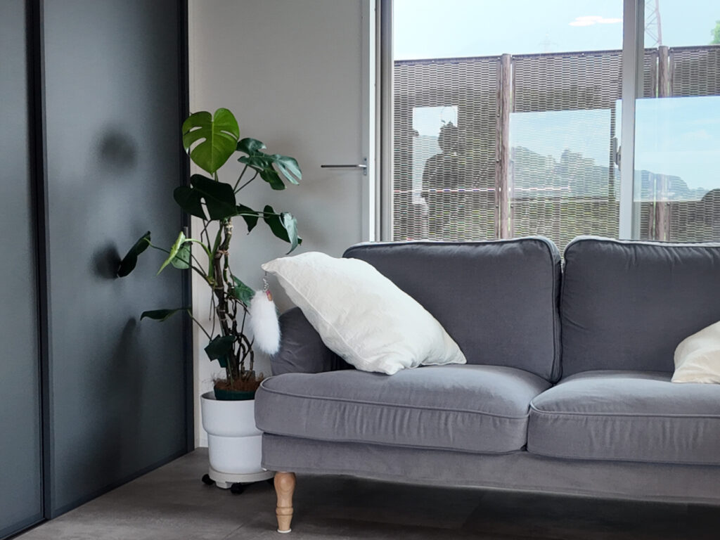 そのため、ベースカラーを白とグレーにすることで、オレンジやグリーンの小物・雑貨をアクセントにしたり、木の素材をプラスして柔らかい雰囲気にしたりと、気分に合わせて幅広く楽しめる空間になるようご提案しました。