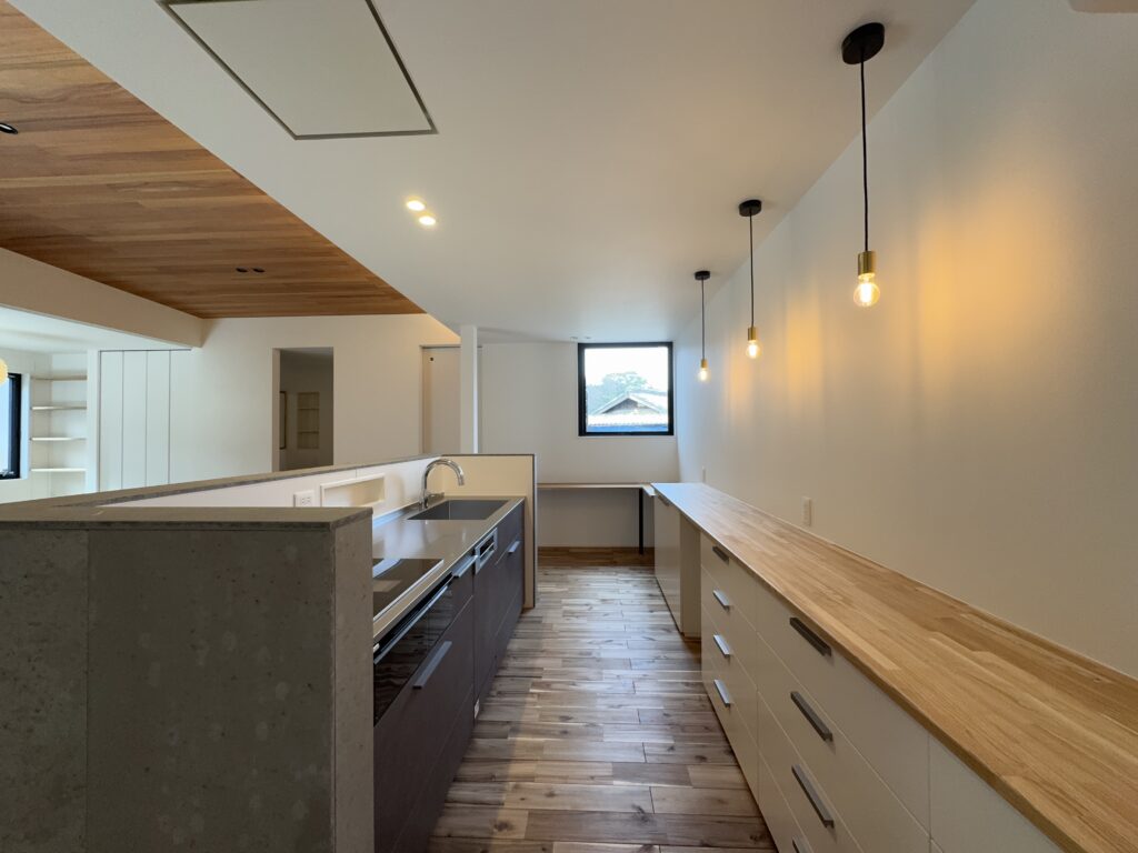 落ち着いたトーンでまとめられた空間の中に、日々の使いやすさを考えた工夫が随所にちりばめられています。